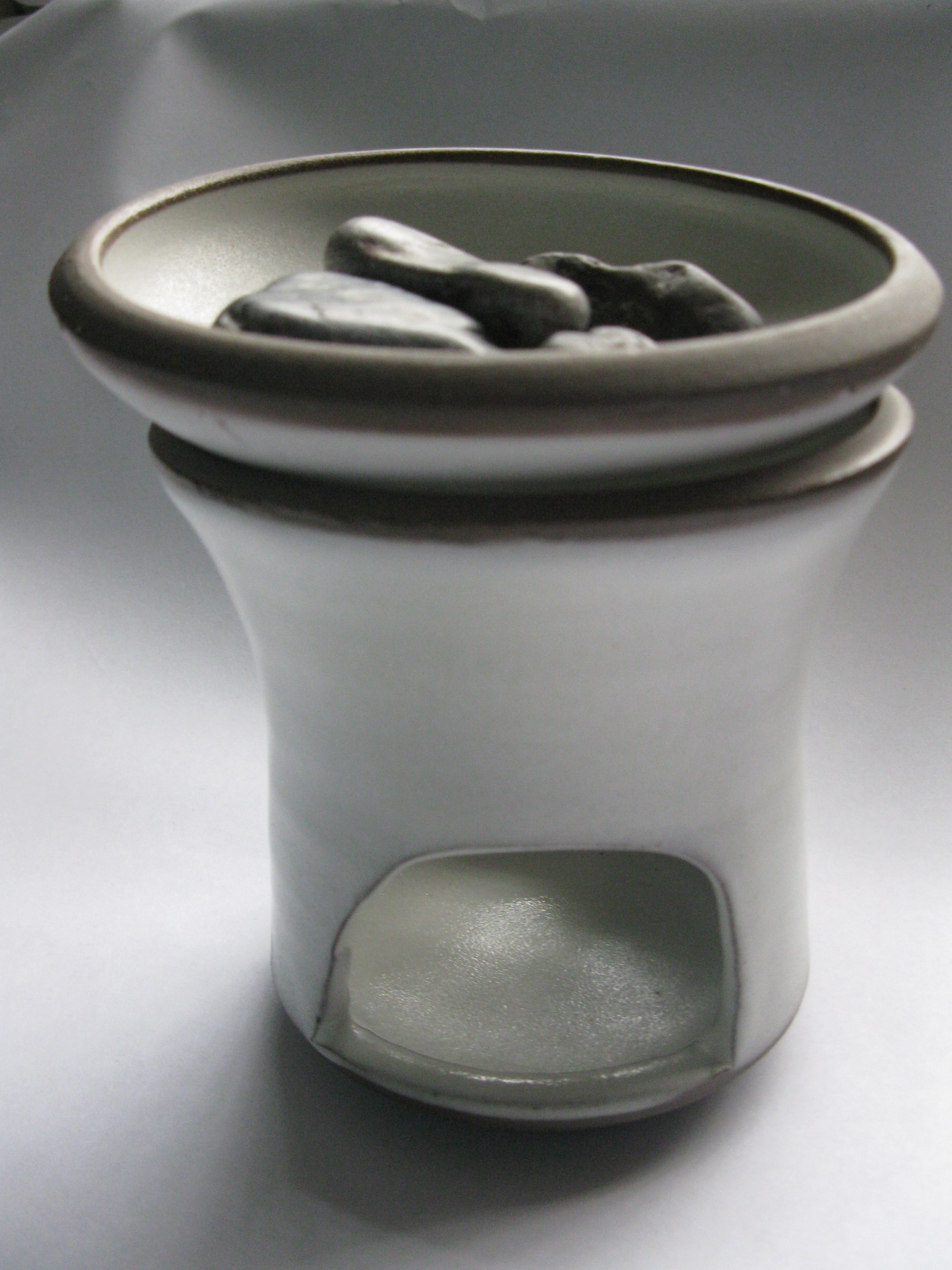 Ähnlich wie bei einer Duftlampe, stellt man untern ein Teelicht hinein. Die Schale ist nicht geschlossen, sondern hat Löcher. Wir brauchen jetzt also kein Wasser, sondern suchen uns beim nächsten Spaziergang ein paar schöne Steine. Mit den Steinen kann man die Temperatur regulieren. Auf die Steine kommen Kräuter, Hölzer, Harze, Schalen, … Anders als beim Räuchern wird das Material nicht verbrannt. Beim Kräuterlicht entweicht das Aroma der Kräuter und Hölzer. Dies ist eine gelungene Zusammenarbeit mit dem Kräuterstadl. Es freut mich sehr, dass etwas Gutes dabei entstanden ist.